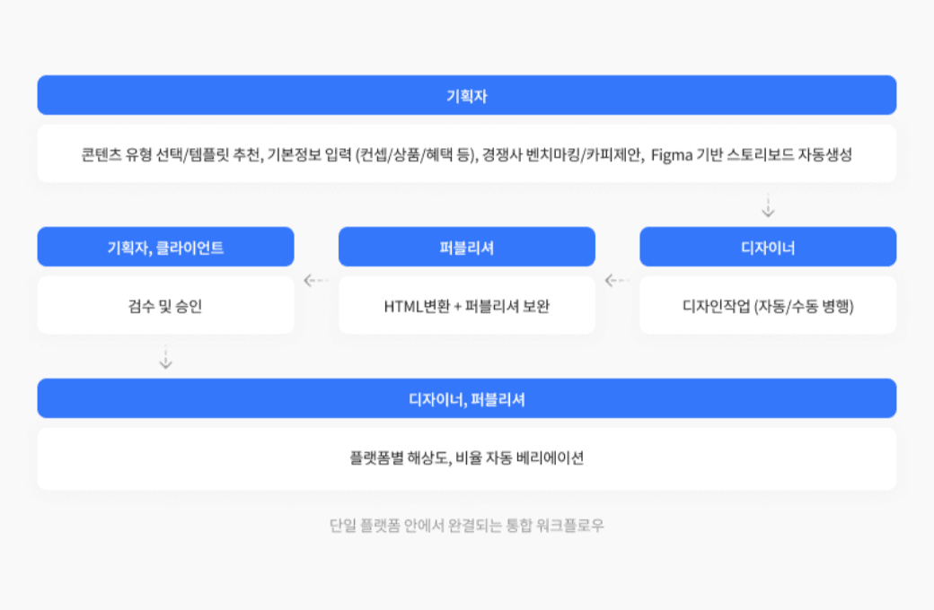 프레임아웃 AXC에 따르면 AutoPage AI는 기획자, 디자이너, 퍼블리셔 모두 각자의 영역에서 고부가가치 업무에 집중할 수 있도록 설계된 협업형 상세페이지 자동화 플랫폼이다.