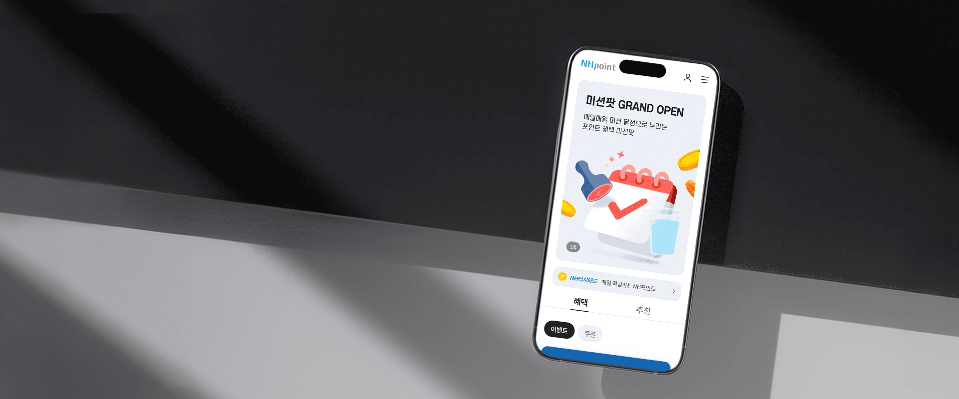 NH 회원과 제휴/참여사 간 연결 허브로써 포인트 적립 사용에 대한 정보와 바로 가기, 이벤트를 통한 방문 유도, 쿠폰을 통한 혜택 제공 등 NH 멤버들에게만 부여되는
